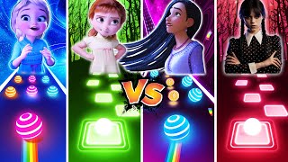 Baby Elsa & Anna VS Wish Asha & Wednesday Addams - Tiles Hop AND Dancing Road! Let It GoOneBeat