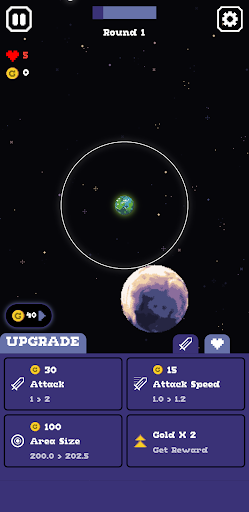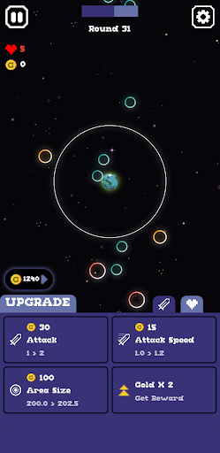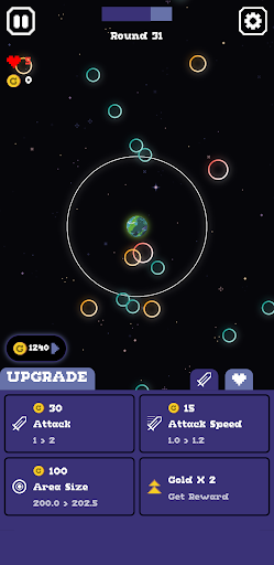 Take control of a stationary globe and fend off relentless enemies as they advance towards the player at the center of the screen. Upgrade your attack power and speed to overcome increasingly faster and stronger foes with each round. Strategically manage health upgrades to recover and boost your maximum health. Immerse yourself in the cosmic background as enemies become fiercer. Can you survive the onslaught and achieve the highest score? Brace yourself and prove your skills as the ultimate Astral Defense!