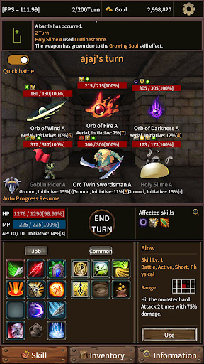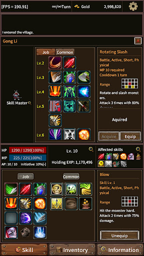 Monsters in the dungeon have unique traits and skills, so you have to decide what to do while wondering whether to use some skills and items each turn.