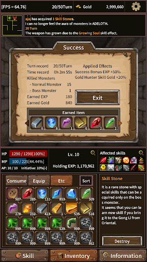 If you clear the dungeon after multiple battles and boss battle, you can get EXP and various items, which you can use to acquire more skills and powerful equipment.