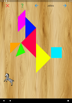 - Puzzle tangram / origami, the animals will be assembled from 7 basic shapes, the baby's task is to match the correct position of the matching pieces to find the correct answer. This game really requires children to have good logical thinking and the ability to imagine shapes and spaces.