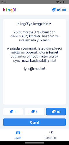 25 numarayı 3 rakibinizden önce bulun, kredileri kazanın ve sıralamada yükselin! Oynamak istediğiniz kredi miktarını seçerek ister internet bağlantısı olmadan ister olarak oynamaya başlayabilirsiniz! İyi eğlenceler!