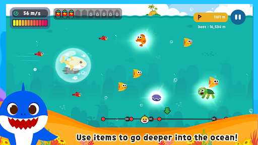 Full of curiosity, Baby Shark loves exploring the ocean. Help him get as far as he can together with his friends!