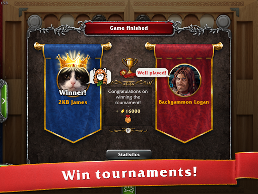 The game features 100% fair dice rolls, six beautiful board designs, two difficulty levels in AI games, daily tournaments, extensive stats, and Elo score support. With regular updates and daily bonus coins to collect, there's always something new to experience.