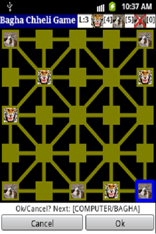 - The Player taking side of Bagha wins the game if the Player manages to kill more than four Chheli so that it is impossible to block Bagha's movement.