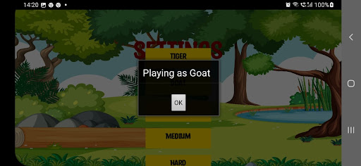Baghbandi is a game of Tigers and Goats.You can select to play as Tiger or Goat vs AI.