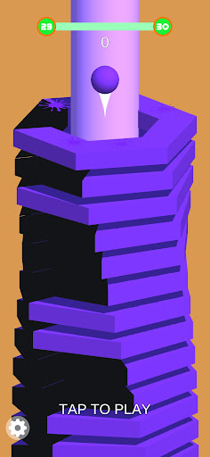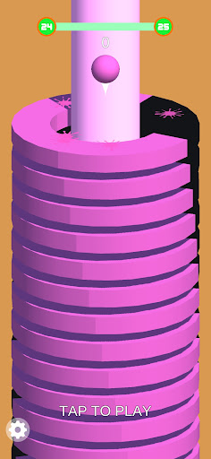 Smash your ball g through colorfull platforms to reach the bottom of the tower. But be cautious, if you hit a black one, the game is over! Your ball g shatters to pieces and you have to start your fall again.