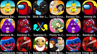 Banana Survival Master,Skibidi Shooter,Among Us,StickWar Legacy,Garten Of Rainbow,Supreme DuelistMeoH Gameplay
