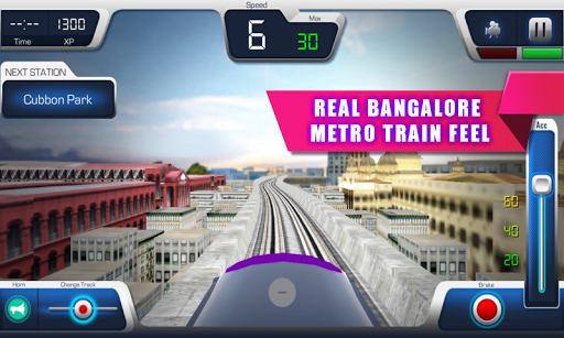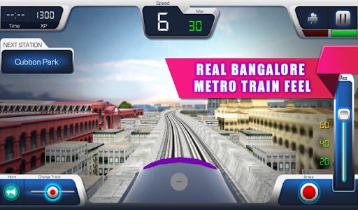 Control the speed of the train by accelerating and keep eye on maximum speed while conducting metro train, Incase if you cross the maximum speed then there might be a chance of revoke your driving license which cause game over! Press and hold on the brake to stop the train right at the station and each station has got limited time to board and de board the passengers and hence you need to very careful with the timings. There are 2 lines namely Green Line and Purple line where journey starts from Nagasandra to Puttenhalli and Mysore Road to Bayappanahalli respectively, select different trains and route to get start. You will also be having different view like driver view, top view, etc where you can switch during the game play. You can also swipe the screen left to right in order to see the real buildings surrounding you.