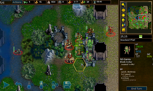 Battle for Wesnoth is a fantasy strategy game with addictive campaigns, AI controlled players, multiplayer gaming and more, available for Android with minimal modifications.