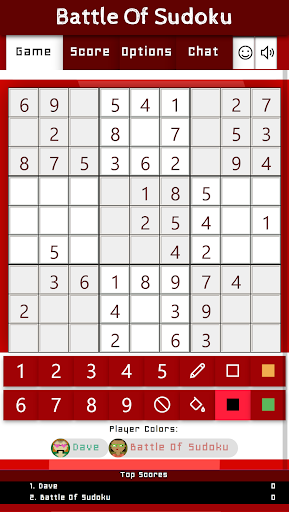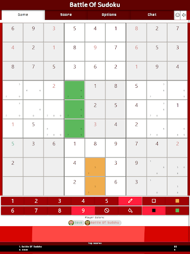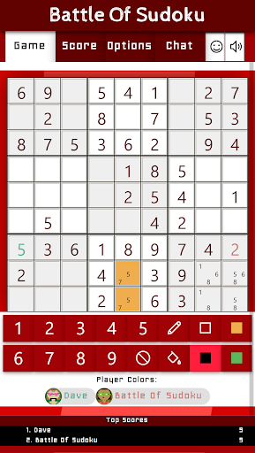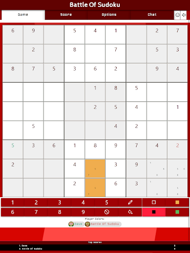 This game has a special teamplay option that allows two teams to compete against eachother. When joining a game, you can select your team (1 or 2). If a minimum of two players have joined one of the two teams they are part of that team. When playing in team each point you win is added to the total score of that team. Also the notes and filled colors are shared between all team members. This allows for specific co-op solving techniques to complete the puzzle as a team.