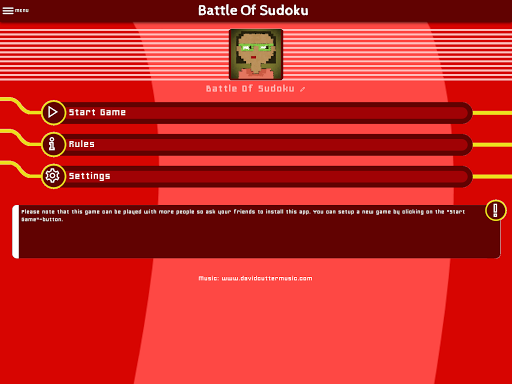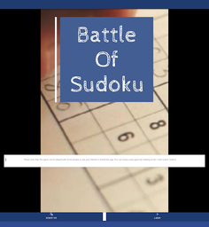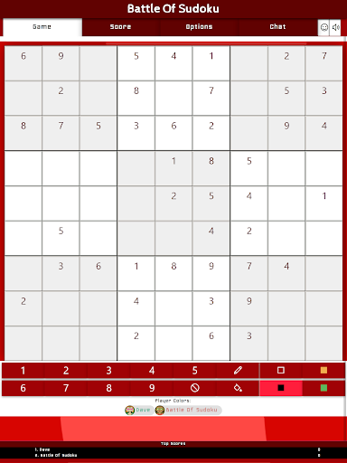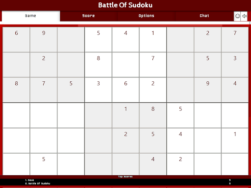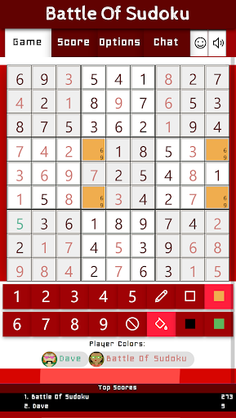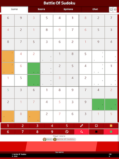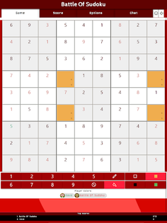 Battle Of Sudoku is a multiplayer version of the puzzle game of Sudoku that you play against other players or a team. The primary objective is to fill a 9×9 grid with digits so that each column, each row, and each of the nine 3×3 subgrids (also called "boxes", "blocks", or "regions") contain all of the digits from 1 to 9. Before you start a new puzzle, you can set the difficulty level in the game options to a number between 1-6. One is the easiest and six is the hardest level. The level is used to place some numbers on the sudoku-grid which all players must solve at the same time.