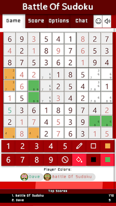 The game ends when the puzzle has been solved and all numbers are filled within the grid correctly. The person that has earned the most points, wins the game. If you have disabled the option to view the correct numbers of other players, the game ends when ONE player has found the solution. Note that this does not give any extra points to that player, so other players are still able to win the game when they made lesser mistakes than person that solved it.