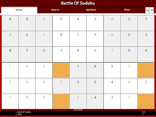 When the game starts, every player is shown the exact same puzzle which they need to solve. There are two modes in which you can play. The mode is configured in the game options and is called: "Show the correct numbers of your opponent". This option means that every number that is added to the solution is shown on the screen of every player. Each correct number earns you points and you are not allowed to place the same number that was placed by another player. This means you must be the first one to have a number correct in order to earn the points.