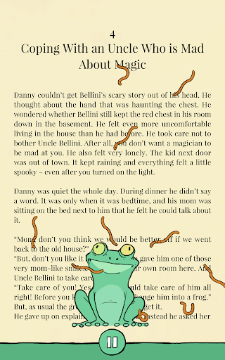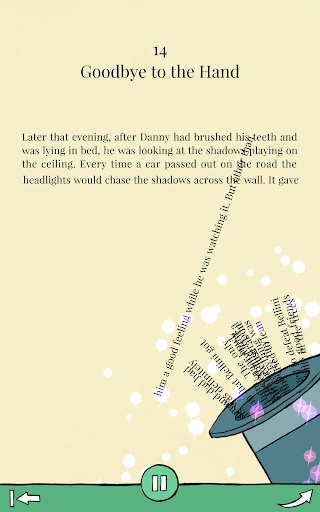 When you put the device down on the table again, you will be back in the story. Each chapter has an activity or a doodling game you can solve while listening.