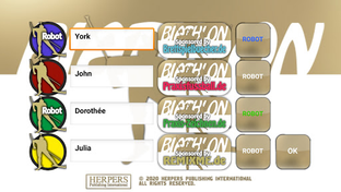 2. When selecting a player, you can give each player a name and decide whether he should be played as a robot or with the hand. (The shooting is also carried out manually with the robots.)