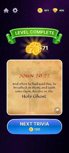Bible Trivia Daily is loaded with features that provide an addictive and rewarding experience: