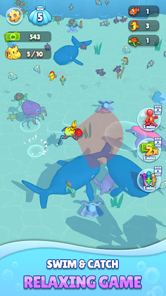 🌊 Explore the sea world and catch a variety of fish species, including goldfish, dolphins, turtle and more.