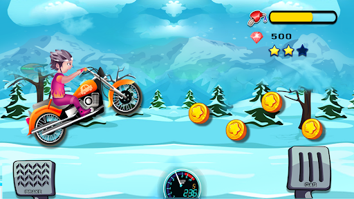 This moto racing has Nine different mountain trails. This exciting motorcycle racing game gives the rider a tough time. Lots of hurdles and difficulties make many problems to reach towards the winning point. In this hills motorcycle game, let's carefully drive on hills and play with your passion of facing stunt bike uphill racing challenges in this hill top bike racing games. Enjoy moto hill racing & perform many amazing stunts and let’s jump high on the roughest paths to cross the hurdles as it is known as the best jumping games & moto hill climb racing game. Enjoy hill top bike racing game & be prepared for the challenges ahead as you navigate through the twists and turns of the hill climb bike racing games. But with quick reflexes and strategic thinking, you can overcome every obstacle and become the champion of Moto Hill Climb racing game.