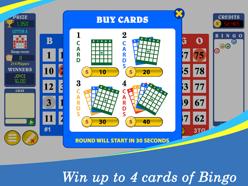 - Play up to 4 cards at once and increase your Bingo odds of winning the round.