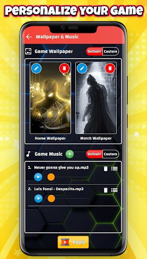 ‣ Custom Wallpapers & Music : Make the game fully personalized by adding your favorite wallpapers & music as game BGM.