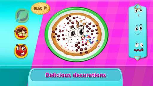 Download Biscuit maker Cookie Delight Cooking Games where you mix ingredients, make dough, bake cookies, shape cookie, decorate with sprinkles, toppings, frostings, marzipan and candies, design and eat caramel cookies.