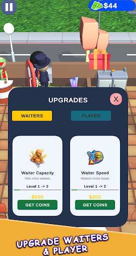 Unlock new menu items, hire more waiters with unique abilities, and upgrade your restaurants to attract more customers and expand your business. Experiment with different recipes and create signature dishes to stand out from the competition.