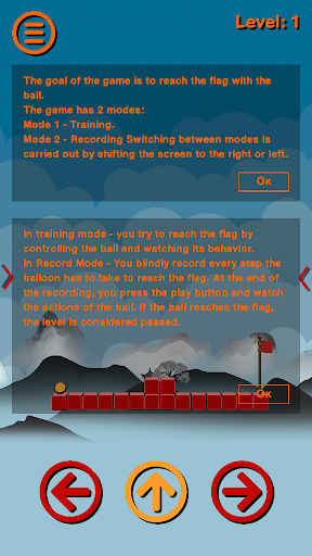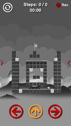 In recording mode – You blindly record every step that the ball must take to reach the flag. At the end of the recording, you press the play button and watch the actions of the ball. If the ball reaches the flag, the level is considered passed.