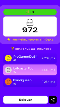 • At the end of the game, compare your score with that of the other players and aim for the top of the general ranking!