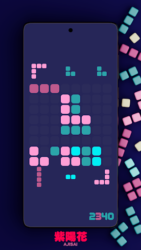Choose a piece and place it so as to eliminate a horizontal or vertical row. Don’t let the dice fill the field. Free the cells and score points.