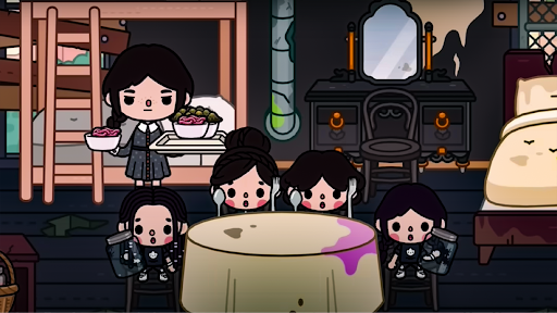 7. Toca Life World games in the style of Wednesday Adams.