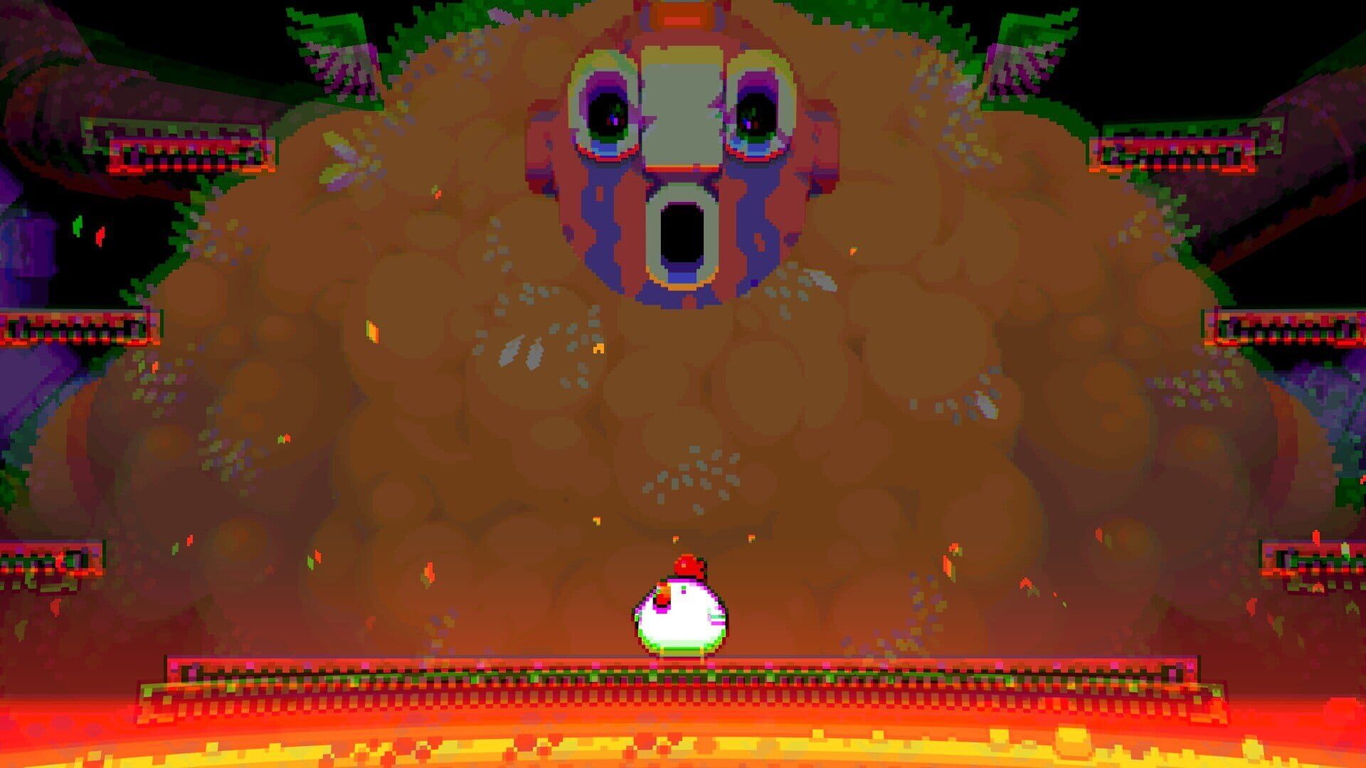 A chicken turned hero lays bombs to uncover secrets, fight staff, and wildlife in this explosive exploration platformer.