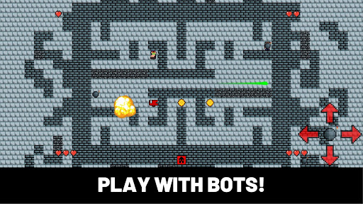 Try to be the last-survivor by placing bombs wherever you want on the map and avoiding bombs that your enemies have placed. Try to gain golds by collecting them which appear at random locations on the map and increase the amount of bombs you have placed. Enjoy the time that you will spend with your friends or by yourself!
