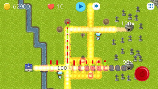 You upgrade the towers, grow bomb firepower, and beat the monsters.