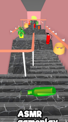 Here we go with Bottle on Stair challenge , Roll the bottle on Stairs and escape from Obstacles and reach end with out break , FUn Bottle Rolling Down stairs Asmr Game with addictive fun levels Engage in challenging and fun filled Run Challenge Bottle on Big Stairs - swipe left and right avoid stairs gaps , hurdles , Dumbles , glass and all , Unlock rachapotes bottles and save the bottle .