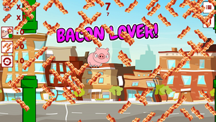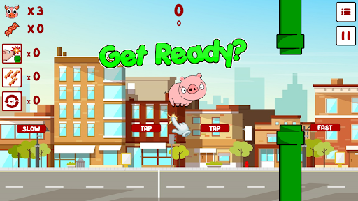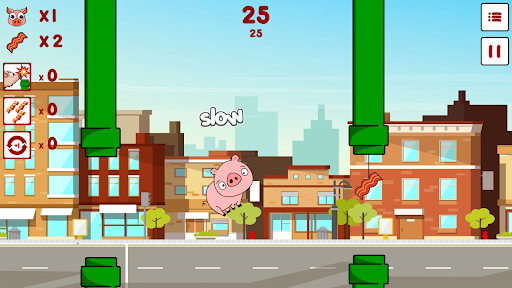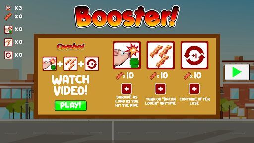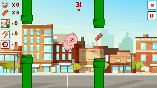 Dodge the pipes with combo moves to score points, eat some bacon ๐ฅ on the path to buy boosters ๐ and help him get further and further!