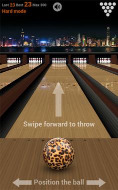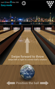 * Slide your finger on the screen from the starting line towards the pins (the speed is not important, what matters are the touchpoint and the drop-out). The longer the distance is between the first contact and drop-out, the faster the ball goes.