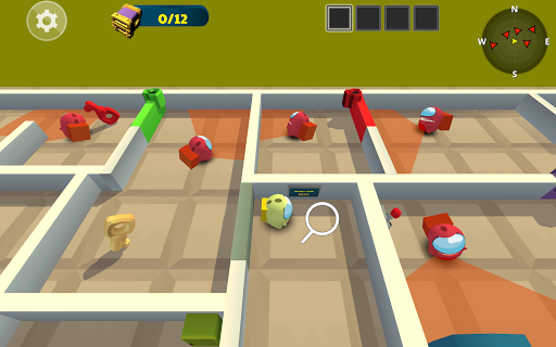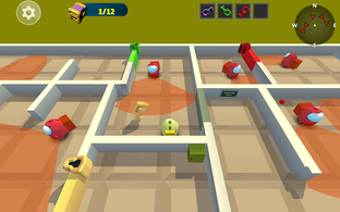 Use the joystick to move around, get close to any crewmates from behind to box crew. You need to hunt and box all the red imposter to complete the level.