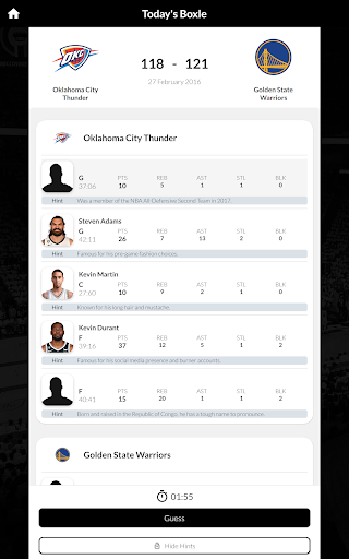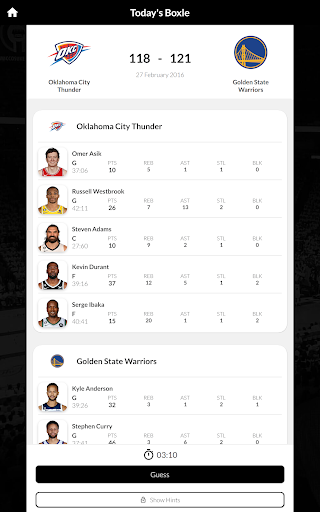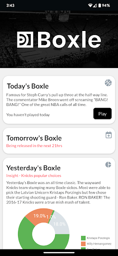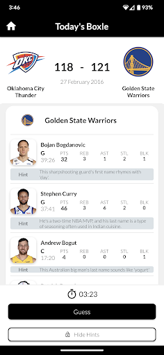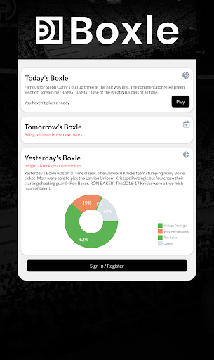 Get ready to test your knowledge with Boxle - the NBA box score guessing game. Each day, we will put up a box score from an infamous NBA game - minus the players, and it's up to you to guess who's who! Are you the biggest NBA sicko in the world? Prove it and join the fun - download the Boxel app now!