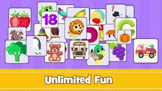 Memory Matching games for Kids is a unique creative game for the whole family. Children, kids or toddlers learn all the names of numerous pets, farm animals, jungle animals, fruits, vegetables, Alphabets and Numbers – through fun and play. Free Memory Match pair game of pairs by cards flip game makes Memory Match easy in brain training & a perfect time killer. This free animals puzzle games for kids will keep your children quiet and entertained in car, in a restaurant or everywhere. This learning game for kids help your baby with short term memory problems or lack of attention like ADHD.