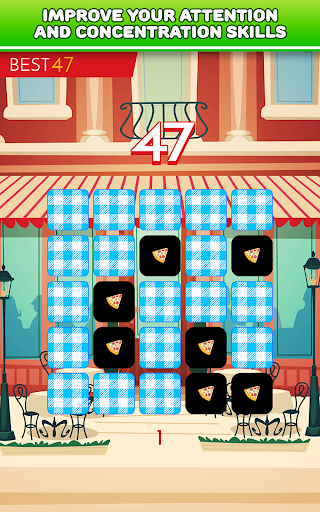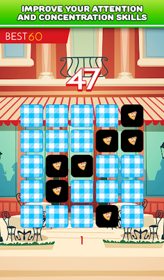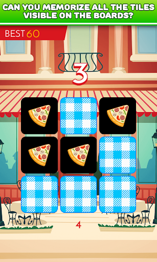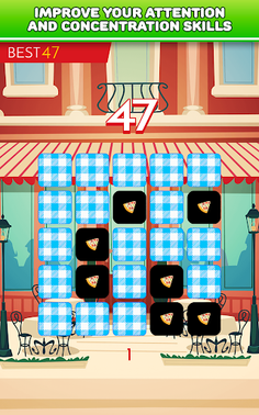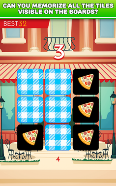 This is one of brain teasers which help you train your short-term memory and visual memory. Can you memorize all the tiles with tasty food on 3x3 board? It's simple! So maybe you try do this on 4x4, 5x5 and 6x6 board. Quite difficult, right? Are you ready to take challenge and test your memory?