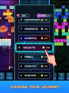 - Journeys: Explore 10-stage sets with unique mechanics, endless brick patterns and boards, thanks to our innovative stage generator.