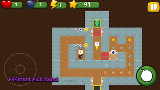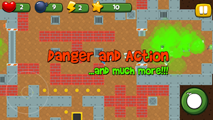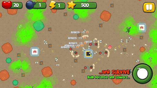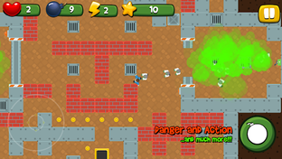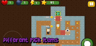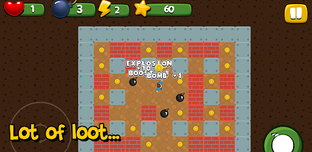 This is a 2D top-down game. Different mechanics such as "push boxes", "360 character moving", "tower defence", "bots/npc pathfinding AI with overlapping prevention", "tap tap tap mechanic" , bomb placing, walls and other objects can be exploded and destroyed, "Awards", are implemented in the game, which make your game play fun and varied.