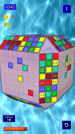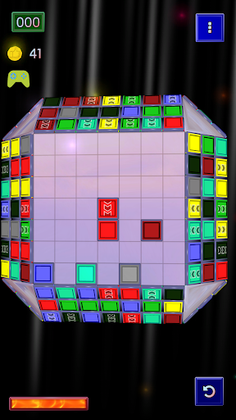 The game field is a cube on which five faces are available for play. There are still colored bricks on these faces. The goal of the game is to clear the faces from them. This is achieved by shooting from the edges of the faces of other bricks that slide straight until they rest on an obstacle on the field. If three or more bricks of the same color come together, they are breaked and disappear. When an obstacle that prevents another bricks from moving disappears, it continues sliding on until it reaches the other edge.