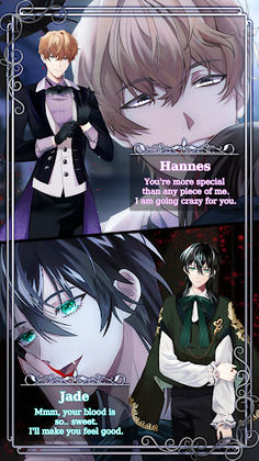 The Feste Castle is home to some of the enigmatic characters. Xion Crowld, the castle's ruler, is from the highest noble house that elevates his stature. Jade Wellua belongs to a prestigious family, the Crowlds, and is an artist blessed with creative abilities. Lagen Klein leads the vampire resistors opposing the ruling class, and finally, Hannes is the trusty butler by Xion's side.