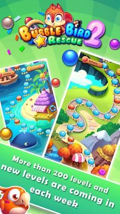 Shoot bubbles and match colors to pop and drop your way to rescue the trapped baby birds! You’ll be addicted to "Bubble Bird Rescue 2" from the first hit!