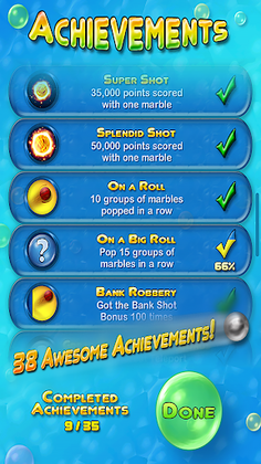 Clear the marbles and unlock the hidden key bubble in this incredibly fun and challenging game – all while having a blast! Play with ease as Bubble Bust provides accurate controls, including two touch options to shoot towards your desired spot. There are plenty of features to keep the game entertaining and engaging, including an astounding 190 levels with 490 total levels available. Rise to the top of the global leaderboards or challenge yourself with the game's 38 achievements. The game's replay value is unmatched, and the colorblind mode is an added bonus.