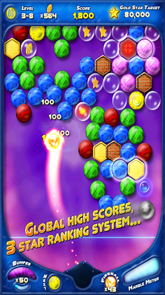 In Bubble Bust, make sure that marbles of the same color are grouped together and pop them. You lose when the marbles cross the glowing line at the bottom of the screen. Bubble Bust has a three-star ranking system, tracks today's and personal records for each level, and has captivating arcade-inspired music. Experience exceptional realistic game physics and outstanding visual effects with the latest power-ups and bubbles.