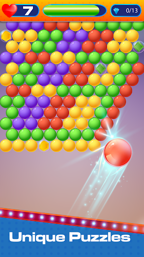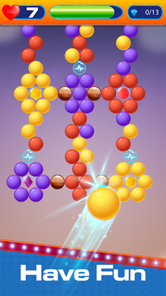 solve the fun & colorful puzzles and beat the challenges to reach the level’s target and win this Bubble shooter game!.