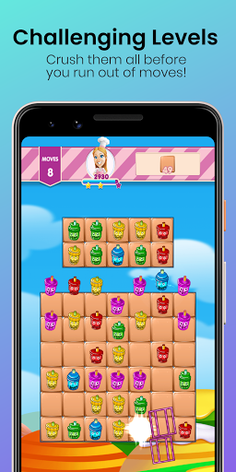 Swipe similar candies to merge them and solve the Match 3 Puzzles before you run out of moves! Complete hundreds of challenging new and interesting levels and win Bubble Tea Crusher Game. It's not as easy as it seems. Each level is more challenging than the previous. How far can you go?
